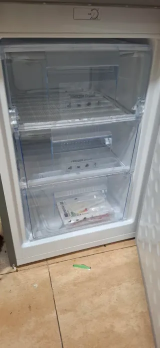 Congelador cajones, marca Zanussi, funciona bien. El primer cajón abre lateral y hay rota una de las patillas pero se puede poner, el resto de cajones está en buen estado. Tiene un pequeño golpe en la puerta y el tirador se rompió y se puso una tira para abrir cómodamente. Es antiguo pero funciona muy bien