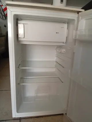 Nevera blanca de la marca Thor con congelador integrado. Ideal para espacios reducidos. - Medidas: Alto 84 cm, Ancho 50 cm, Profundo 55 cm. - Precio: 70€.