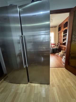 Nevera y congelador combi marca Siemens, modelo side by side. - Acabado en acero inoxidable. - Diseño moderno y elegante. En muy buen estado, la vendemos por reforma de la cocina y sustitución por integrables.