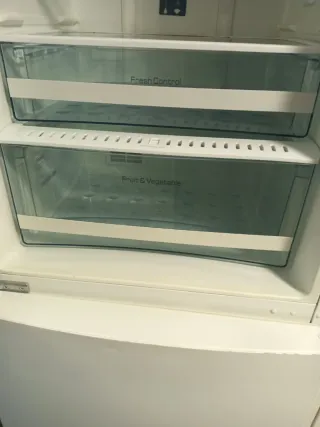 Funciona perfectamente, el único defecto es hace un poco de ruido, y el segundo cajón de el congelador está pegado, va todo perfectamente, se usó hasta el día de ayer, a recoger en Palma en un tercero sin ascensor. Nevera blanca con varios compartimentos y cajones. - Estantes de cristal. - Cajones transparentes para verduras. - Compartimento para congelador.
