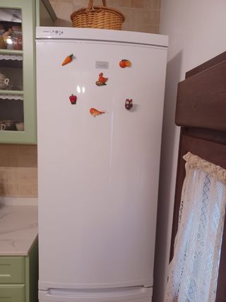 Frigorífico combi en muy buen estado y funcionando sin problemas. Enfría y congela perfectamente. Ideal para piso de alquiler, garaje, segunda vivienda o como nevera auxiliar. - Sistema: Frío estático (con escarcha) - Iluminación y juntas en buen estado - Limpio y listo para usar
