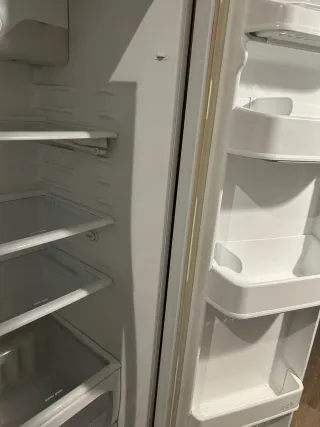 ✅ Características: •Diseño moderno en blanco con tiradores negros. •Dispensador de agua integrado (sin necesidad de conexión al grifo). •Tecnología No Frost (sin escarcha). •Gran capacidad: ideal para familias o parejas que necesitan mucho espacio. •Iluminación LED interior y múltiples bandejas ajustables. •Muy silencioso y eficiente energéticamente. •Un lado es Frigorífico y el otro lado es congelador. • 8 Meses de uso. 📏 Medidas aproximadas: Ancho 91 cm × Alto 179 cm × Fondo 64 cm 💡 Incluye: todos los cajones, estantes y accesorios originales (como se ve en las fotos). 💰 Precio: 470€ (NEGOCIABLES) 📞 Entrega: recogida en mano.