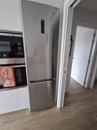 Frigorífico combi LG con acabado en acero inoxidable y tecnología No-Frost. Tiene una capacidad total de 384 litros. - Diseño moderno en acero inoxidable. - Tecnología No-Frost para evitar la formación de hielo ni escarcha. - Amplia capacidad de 384 litros. - Panel digital de control de temperatura - Zona amplia congelador - Clase energética A++ (ahorro de luz) - Botellero y baldas de cristal en perfecto estado - Funcionando sin fallos - Estado sin golpes ni bollos, interior impecable. Cajon del congelador con ligera mancha superficial. Se entrega vacio y limpio ( lo que aparece en fotos no esta incluido). Año de compra enero 2022 (