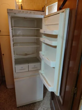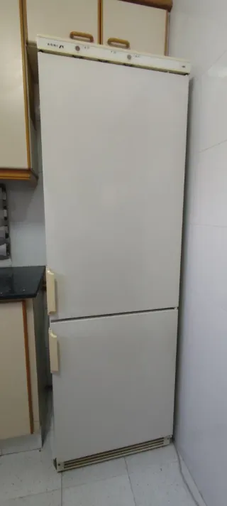Frigorífico combi de color blanco. Dispone de dos puertas para separar la zona de refrigeración y congelación. - Diseño vertical. - Acabado en blanco. Perfecto funcionamiento. Se vende por reforma de cocina. Al congelador le falta un cajón