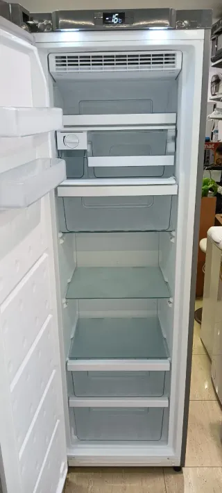 Congelador vertical 185cm no frost nuevo con tara estética - Color plateado. - Diseño moderno y elegante. Estamos en rambla Francesc Maciá 268terrassa electrodomésticos noluc segunda mano y nuevo ocasión estamos de lunes a viernes 10h a 13h y de 17h a 20h sábado 10h a 14h
