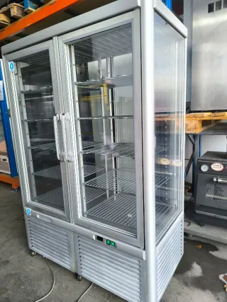 Expositor congelador de doble puerta, 4 caras de cristal ideal para pastelería. Marca Coreco - Diseño vertical con puertas de cristal. - Base con ruedas para fácil movilidad. - Panel de control frontal. 611 32 41 09 Karla