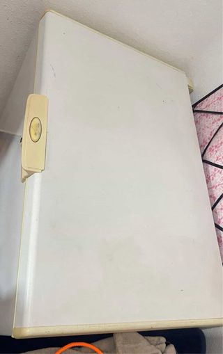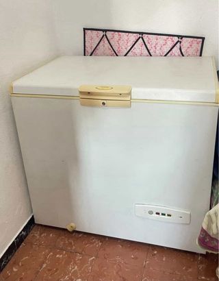 Congelador horizontal de la marca Indesit. Color blanco. - Diseño compacto. - Tapa superior. - Panel de control frontal. S'ha d'arreglar una frontisa. Pel demés funciona perfectament. El venc perquè el canvio per un de vertical.