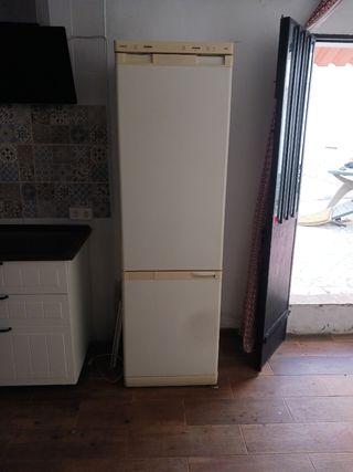 Frigorífico de la marca CROLLS en color blanco. Hay que recogerlo en Salteras. - Diseño vertical. - Compartimento congelador superior. Usado pero enfría genial. La puerta con apertura a la izquierda frio y congelador. El frigorífico está en Salteras. Gomas cambiadas de posición.