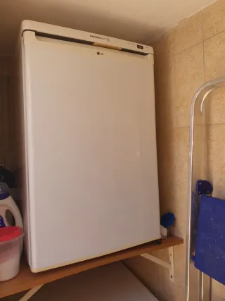 LEER DESCRIPCIÓN: Vendo congelador vertical LG ExpressCool en buen estado.Tiene 4 cajones transparentes para organizar los alimentos,es de color blanco y se encuentra en muy buenas condiciones estéticas.Ideal para espacios reducidos...el congelador NO enfria,creo que el motivo es que le falta carga de gas(aunque si ilumina y marca la temperatura de los grados),asi que seria para meterle la carga de gas o para piezas(incluye sus 4 cajones nuevos,pues a tenido poco uso)..debido a que no enfria,lo vendo por 35 euros(vuelvo a repetir,no enfria y por lo tanto seria para reparar o para piezas...de hay su precio)...Solo entrega en persona.