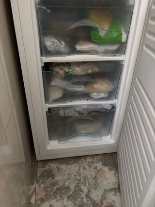 Congelador vertical de la marca Corberó en color blanco. - Con tres cajones. Uno de ellos es para congelación rápida - Funciona perfectamente lo único que tiene son un par de marquitas de óxido que se pueden ver en las últimas fotos