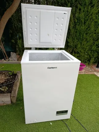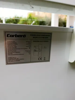 Arcón congelador de la marca Corberó en color blanco. Ideal para almacenar alimentos. Enfria pero no congela!!! - Diseño vertical. - Tapa abatible. - Panel de control frontal.