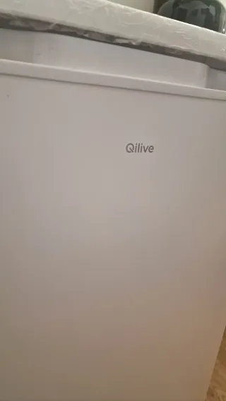 Frigorífico compacto de la marca Qilive, ideal para espacios reducidos. Cuenta con un compartimento congelador. - Color blanco. - Diseño moderno y funcional.