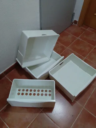 Para nevera Electrolux, también valen para marcas del mismo grupo, Zanussi, AEG, Corbero. 3 cajones de congelador. 12 euros cada uno. 1 botellero. 12 euros 2 bandejas de puerta 12 euros cada uno. Si te interesa, pregunta medidas.