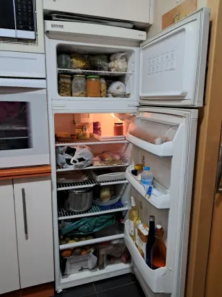 Vendo frigorífico combi Teka NFL 342 C, sistema No Frost. Funciona perfectamente y está en muy buen estado, limpio y cuidado. 🔹 Altura aprox.: 188 cm 🔹 Congelador en la parte inferior 🔹 No Frost (no hace hielo) 🔹 Clase energética E 🔹 Cajones y bandejas en perfecto estado Ideal para piso, apartamento o sustitución de frigorífico. 📍 Recogida en mano. ❌ No envío (por tamaño). Precio algo negociable.