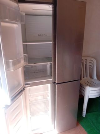 Frigorífico combi Samsung de 2021, sistema No Frost. Está en excelentes condiciones. Se vende por cambio de frigorífico por mudanza, funcionamiento perfecto y muy bien cuidado. Descripción: Frigorífico Combi Samsung RB33B612ESA No Frost inox 185cm, año 2021 Altura (cm): 185.3 Ancho (cm): 59.5 Profundidad (cm): 59.5 Profundidad - incluyendo puerta y manija (cm): 65.8 Peso: 68,0 kg Especificación: Clase energética: E Frigorífico volumen neto (litros): 230 Volumen neto congelador (litros): 114 Nivel de sonido (dB): 35 Sin escarcha: Sí Circulación aérea: Multi flujo Departamento de productos frescos: Sí.