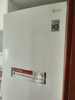 Recoger en Collado Villalba (MADRID) Frigorífico LG de 1,86 cm con tecnología Inverter Linear Compressor. A precio de Ganga, con las siguientes características: - Compresor Inverter Linear. - 10 años de garantía en el compresor. - Enfriamiento NatureFRESH. - Enfriamiento uniforme y rápido en la puerta. Se compró hace cinco años, en perfecto estado de funcionamiento, es buen frigorífico, de clase energética A+++. Muy eficiente. Tiene daños en un cajón del congelador que ha sido arreglado, y está perfectamente y en uso .