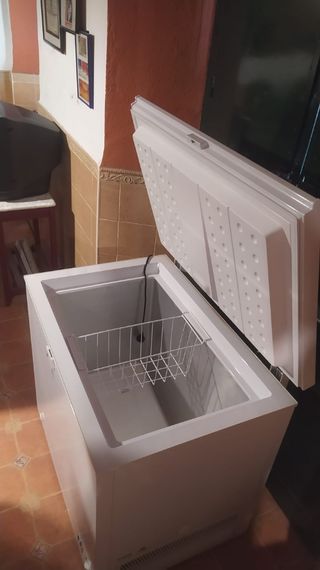 Congelador arcón con cesta metálica.lo vendo por necesidad pero era un regalo de mi madre y le costó mucho porque es muy grande y está nuevo - Interior con escarcha. - Luz interior.