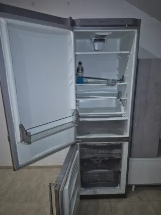 Congelador funciona, nevera arriba no enfria creo faltara gas. Para tecnicos. Nevera combi de color plateado, con un diseño moderno y elegante. - Acabado en acero inoxidable. - Dos puertas independientes.
