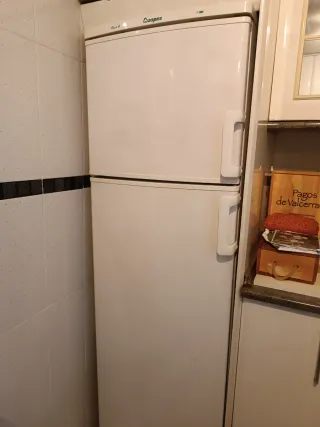 Vendo frigorífico marca Saivod, color blanco, con congelador en la parte superior. Es de segunda mano y necesita una limpieza, por eso el precio es bajo. Funciona correctamente. Lo vendemos porque estamos de reforma y vamos a cambiar los electrodomésticos. Ideal para piso de alquiler, segunda vivienda, obra o trastero.