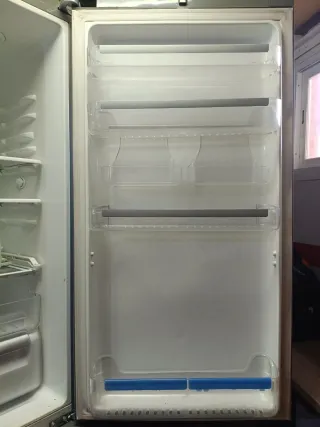 Frigorífico combi de 180cm de altura con dispensador de agua integrado. - Diseño moderno en color gris. - Puertas con tiradores metálicos. - Dispensador de agua en la puerta. Usado pero en muy buenas condiciones, tiene algún picotazo únicamente. Una de las puertas del congelador está rota de lo demás está perfecto. Se regala una televisión con la compra.