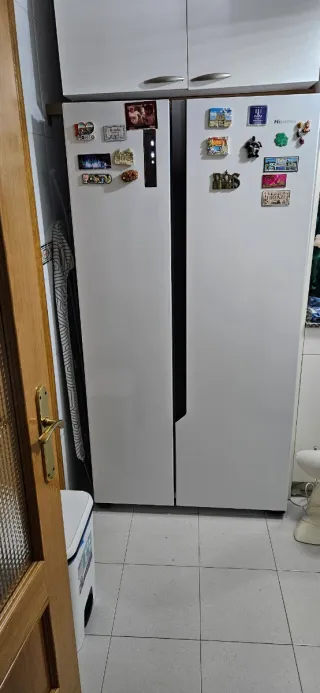 Frigorífico Hisense de dos puertas con diseño moderno. Tiene 3 años y 4 meses. Está muy bien pero el congelador no enfría bien esa es la pega. - Acabado en color blanco. - Amplio espacio interior. - Bandejas de cristal. - Cajones para frutas y verduras.