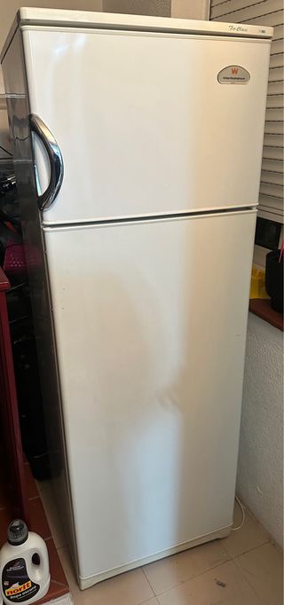 Nevera y congelador en color blanco. - Modelo The Class de Westinghouse. - Tirador cromado. - Diseño de dos puertas.