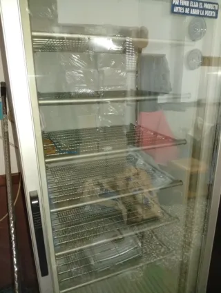 Vitrina expositora congelador con puerta de cristal. Solo ha servido para helados.funciona perfecto Medidas: Alto 1'99 Ancho 0'67 Fondo 0'62 - Estantes interiores. - Iluminación interior. - Diseño vertical.
