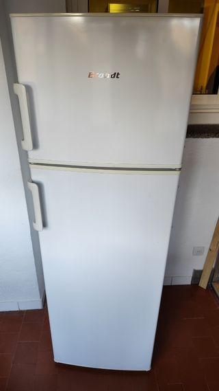 Nevera Brandt de 250L en perfecte estat. Model BFD5665BW de la marca francesa Brandt A++ Format petit (congelador a sobre, nevera a sota) 166x55x58 Detalls extra a la 3a foto (de la web oficial) Conserva tot l'interior de fàbrica (lleixes, oueres, calaixos), també pot canviar la porta de direcció. Neta i preparada per recollir. No m'ha ha donat mai cap problema. Venda per necessitat d'una més gran.