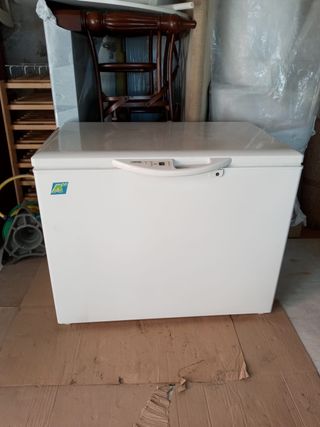 Congelador arcón en buen estado, ideal para almacenar alimentos. Tiene un diseño clásico y es de color blanco. - Medidas compactas. - Dos tapas. - Ruedas para facilitar su movimiento.