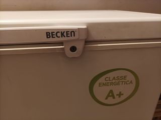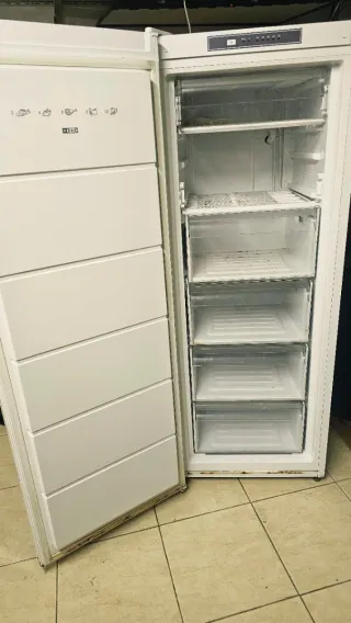 Congelador alcon en buen estado. Ideal para almacenar alimentos congelados. - Medidas aproximadas: 1.5m x 0.8m x 1m (ancho x alto x profundidad) - Color blanco, con algunas marcas de uso. - Incluye dos cestas interiores. No se envía.