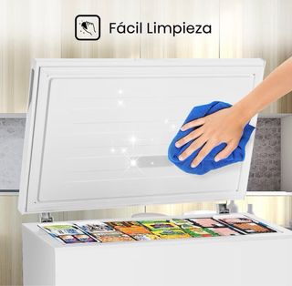 Congelador horizontal de la marca Hisense. - Iluminación LED. - Cajón flexible. - Fácil limpieza. - Puerta flotante.