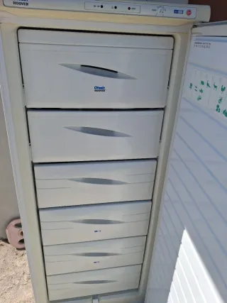 Congelador vertical de la marca Hoover. - Color blanco. - Diseño moderno y funcional. Medidas 145cm alto 60cm ancho las luces de arriba no funcionan estarán fundidas pero funciona perfectamente es un poco antiguo pero funciona perfectamente