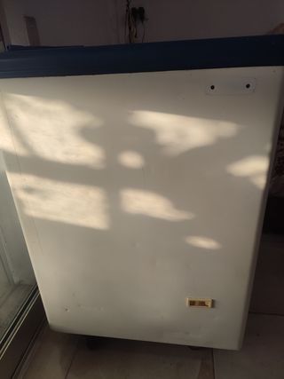 Congelador en buen estado, ideal para espacios reducidos. - Medidas compactas. - Color blanco con detalles azules. - Se encuentra sobre ruedas para facilitar su movimiento. - El precio es negociable