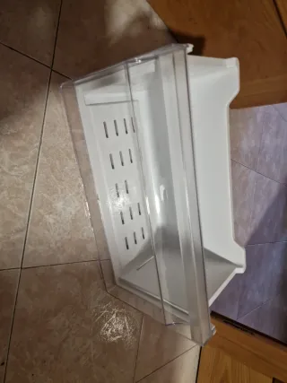 Cajón de plástico transparente para congelador de frigorífico Fagor. - Modelo NO FROST. - Diseño con asa curva. - Base con ranuras. defecto en esquina izquierda pero cumple funcion