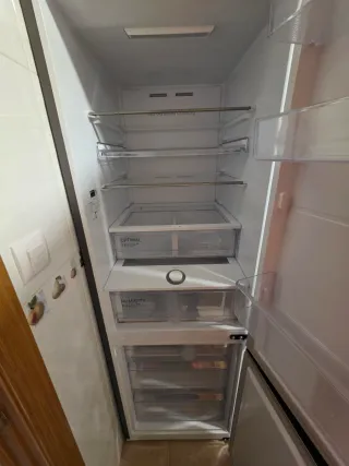 Nevera Haier en buen estado. - Función No Frost. - Control de temperatura para frigorífico y congelador. - Modos: Fridge, Freezer, Holiday. - Bloqueo de seguridad (Lock).