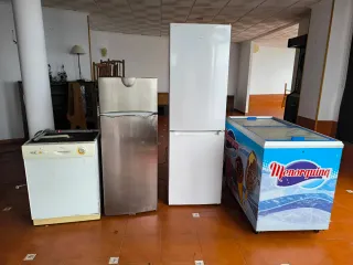 Se vende lote de electrodomésticos que requieren reparación. - Nevera plateada. - Frigorífico blanco. - Congelador horizontal con diseño. - Lavavajillas blanco. - Lavadora 6KG A Recoger por el Comprador.