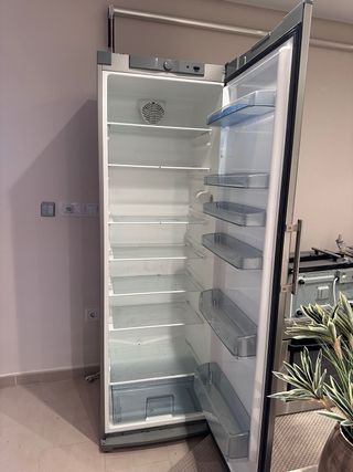 Frigorífico Balay modelo 3FCE643WE. - Medidas 186 x 60 cm, en buen estado de uso y funcionamiento. - De libre instalación, 1 puerta sin congelador. - Tirador ergonómico. - En buen estado de uso y funcionamiento, a nivel estético tiene alguna marca y algún pequeño golpe en el lateral. Para recoger en un bajo de fácil acceso con vehículos.