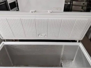 Congelador horizontal de gran capacidad, ideal para negocios o para almacenar grandes cantidades de alimentos. - Diseño moderno y funcional. - Acabado exterior en color amarillo. - Tapa superior con dos secciones.