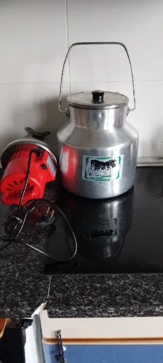 Batidora de leche o suero de leche con una capacidad de 13 litros. Ideal para preparar tus bebidas. - Material: Aluminio. - Incluye tapa y asa.