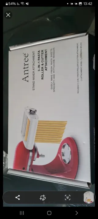 Accesorio para batidora de pie que permite hacer pasta fresca en casa. - Incluye cortador de pasta. - Fabricado en metal y plástico.