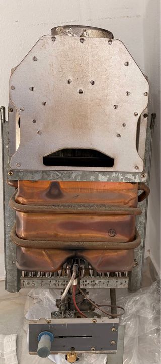 Termo de gas para agua caliente. - Componentes de cobre. - Panel frontal metálico.