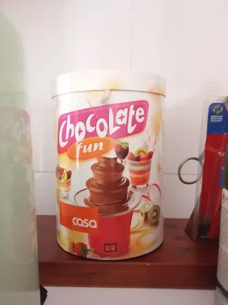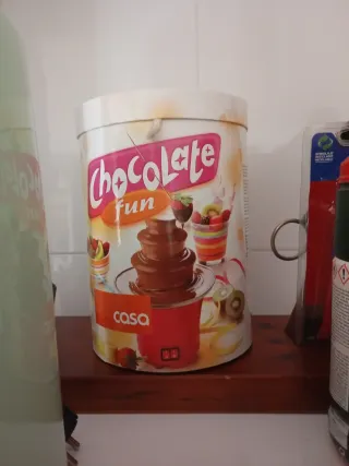Fuente de chocolate de la marca Casa, ideal para fiestas y postres. - Modo caliente ♨️ se enciende y apaga. - Diseño compacto y fácil de usar. - Base roja con interruptor. - Decoración con frutas y chocolate.