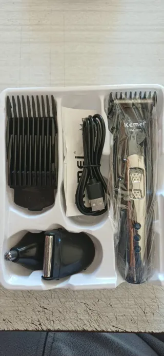 Cortadora de pelo KEMEI multifunción, nueva. Ideal para un corte de pelo preciso y versátil. - Incluye varios cabezales intercambiables. - Diseño compacto y fácil de usar. - Viene en su empaque original.