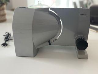 Cortadora de fiambre Siemens en color gris. Modelo MS78001. Incluye pieza para sujetar y arrastrar el embutido que no aparece en las fotos. - Diseño compacto. - Incluye cable de alimentación.