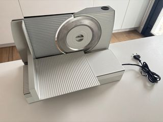 Cortadora de embutidos en perfecto estado, como nueva. - Diseño moderno y compacto. - Protector de seguridad para la cuchilla. - Bandeja de corte. - Base antideslizante.