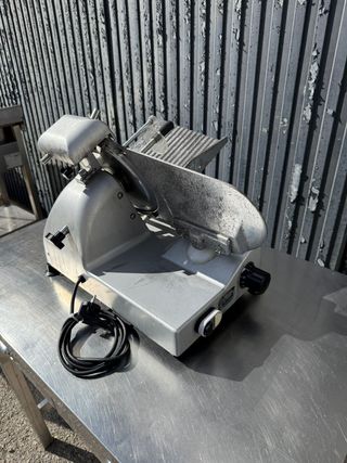 Se venden varias cortadoras de fiambre profesionales, ideales para negocios de hostelería o carnicerías. - Fabricadas en acero inoxidable. - Diseño robusto y duradero. - Cuchillas afiladas para cortes precisos.