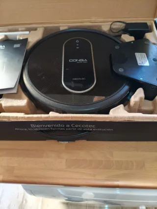 Aspirador robot Conga Eternal Max con alta potencia de succión. - Potencia de succión: 3000 Pa. - Incluye base de carga. Funciona perfectamente, pero tiene un pequeño fallo de batería debido al tiempo. Ideal para pequeños recintos o cambiar batería para que funcione como nueva.