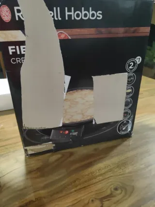 Crepera de la marca Russell Hobbs, ideal para preparar crepes y tortitas. - Superficie antiadherente. - Control de temperatura ajustable. - Indicador luminoso de encendido y listo. - Base antideslizante.