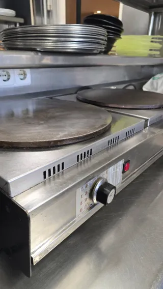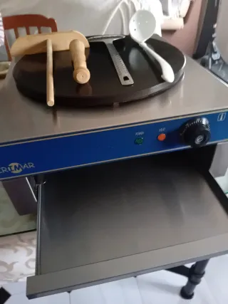 Crepera profesional para hostelería. - Superficie de cocción antiadherente. - Control de temperatura ajustable. - Diseño compacto y robusto. Hay tres unidades a 175 casa una