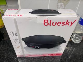 Crepera eléctrica Bluesky para hacer crepes y tortitas. Incluye espátula. - Diámetro de la superficie: 31 cm. - Potencia: 1250W. - Control de temperatura ajustable.